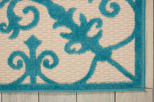 4' X 6' Aqua Damask Indoor Outdoor Area Rug
