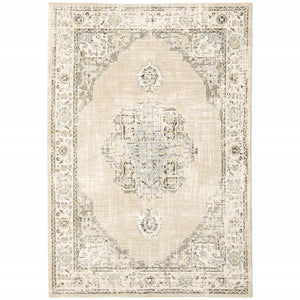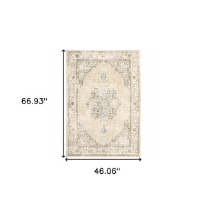 4' X 6' Beige And Ivory Center Jewel Area Rug