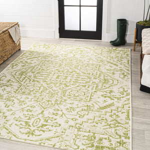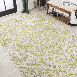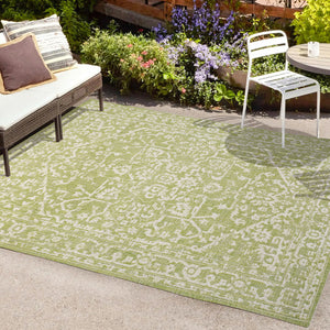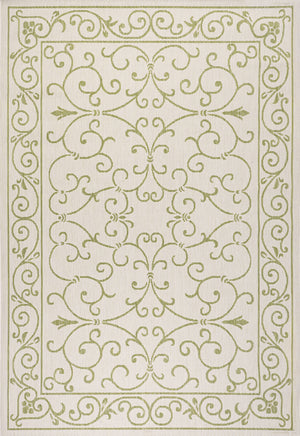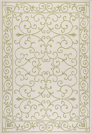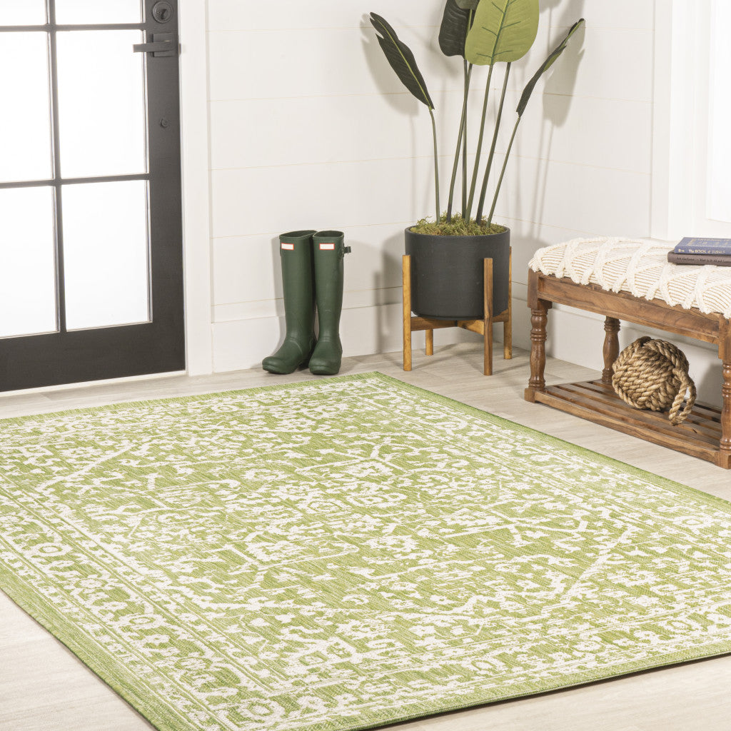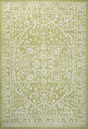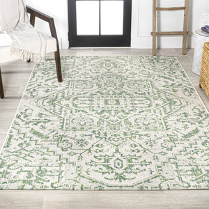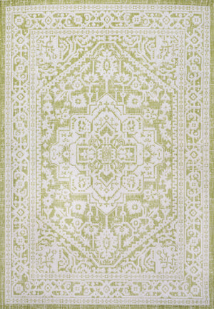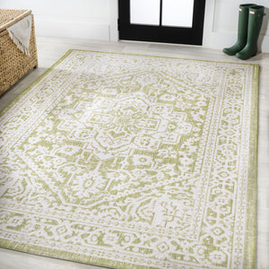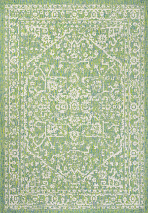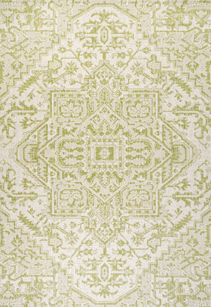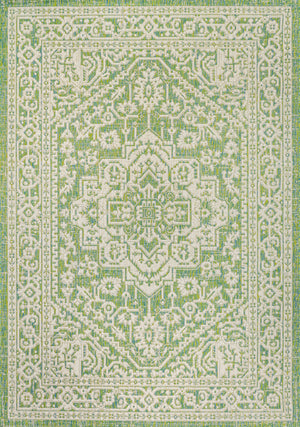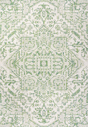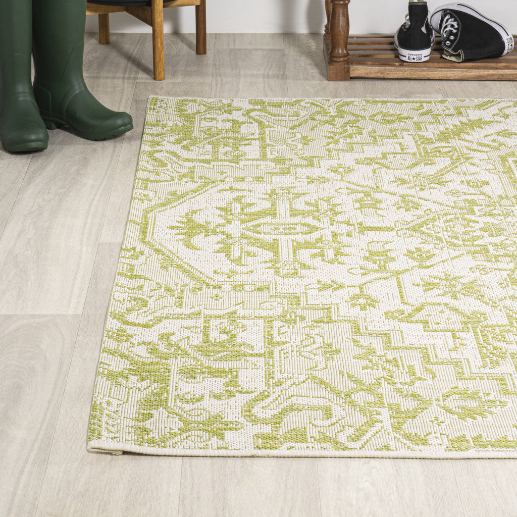 4' X 6' Cream And Green Medallion Indoor Outdoor Area Rug