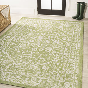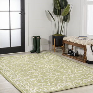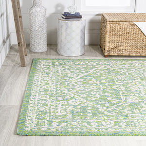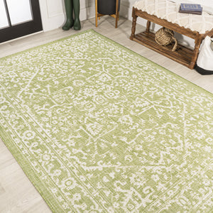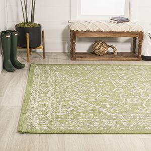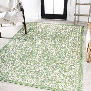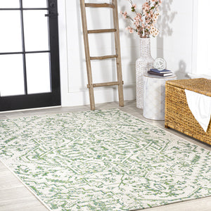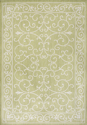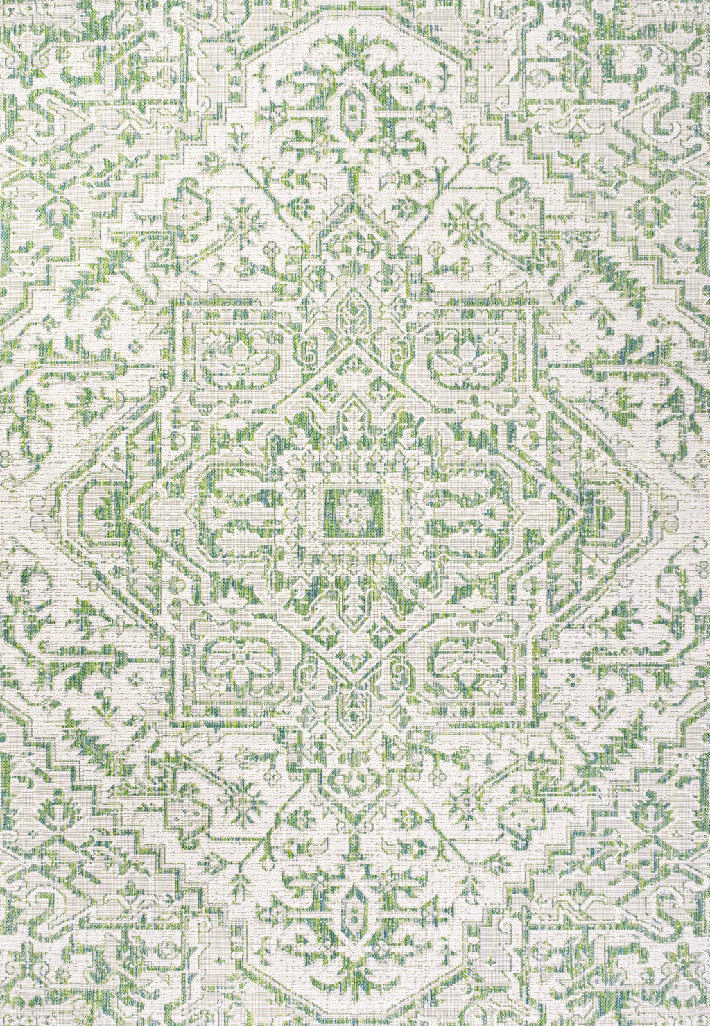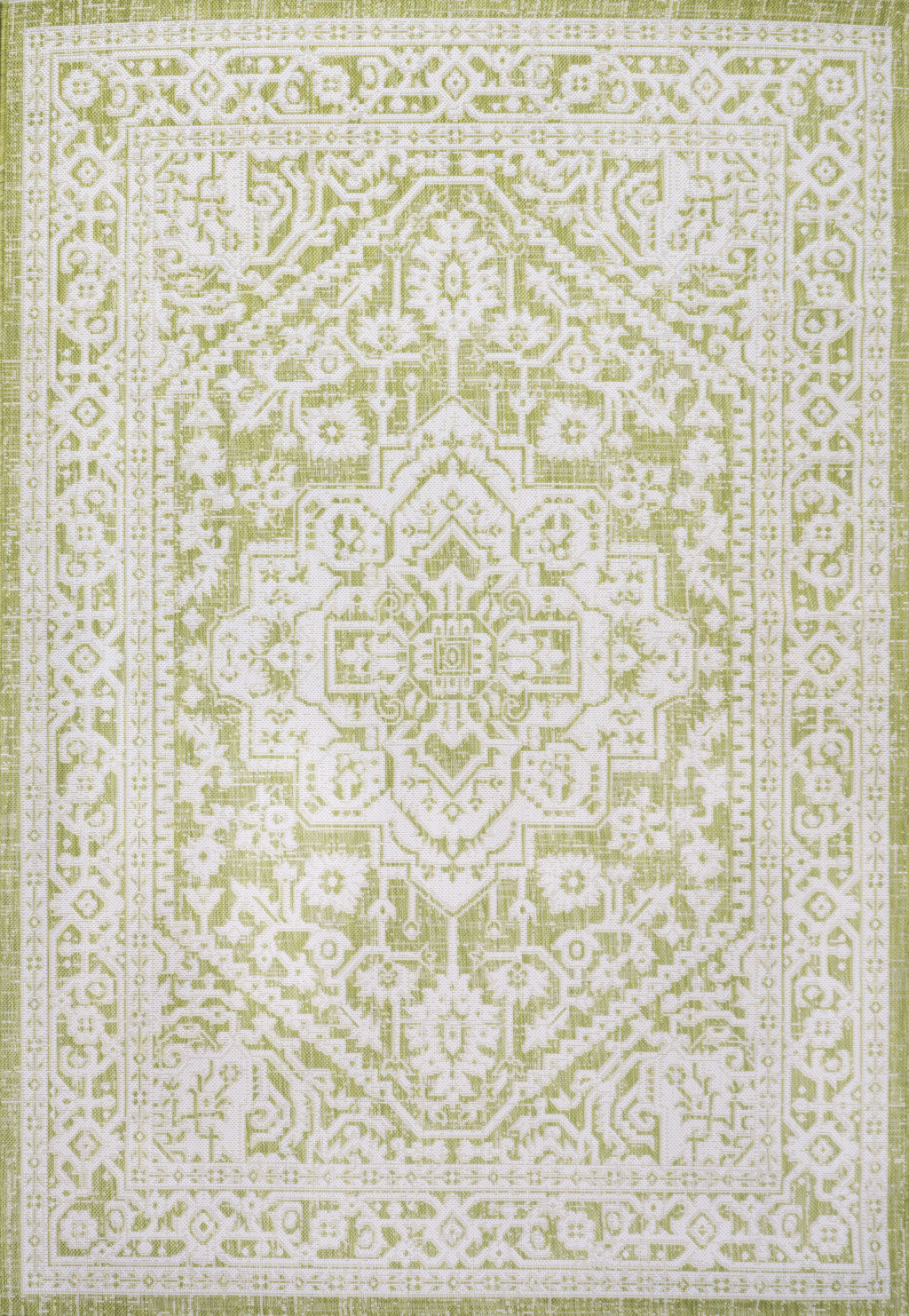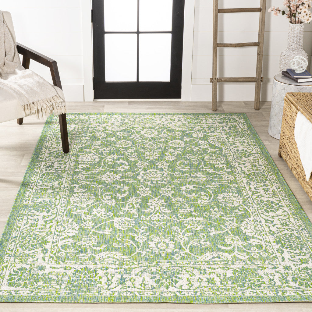 4' X 6' Cream And Green Medallion Indoor Outdoor Area Rug