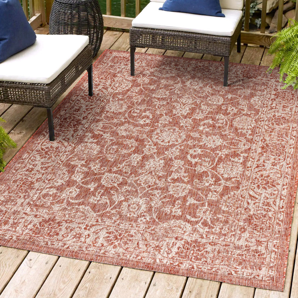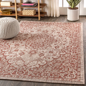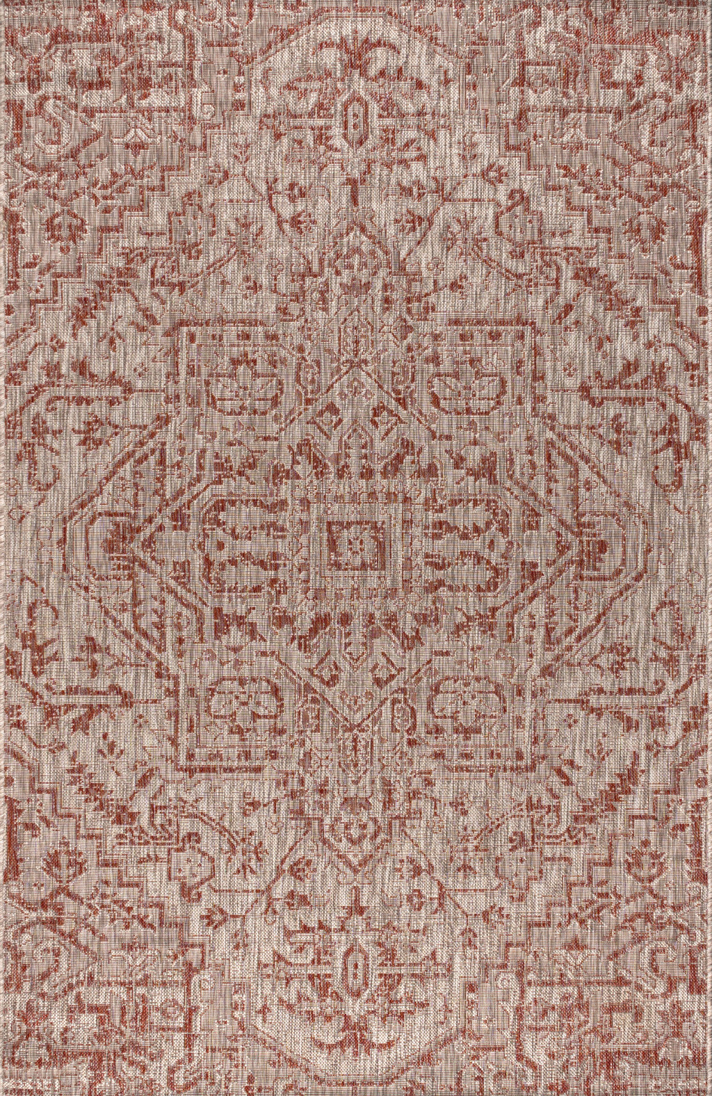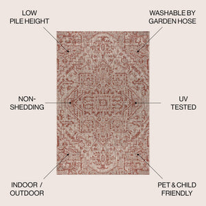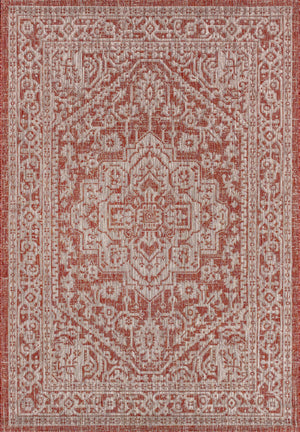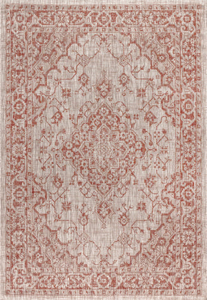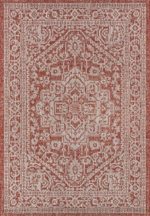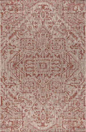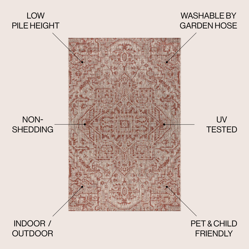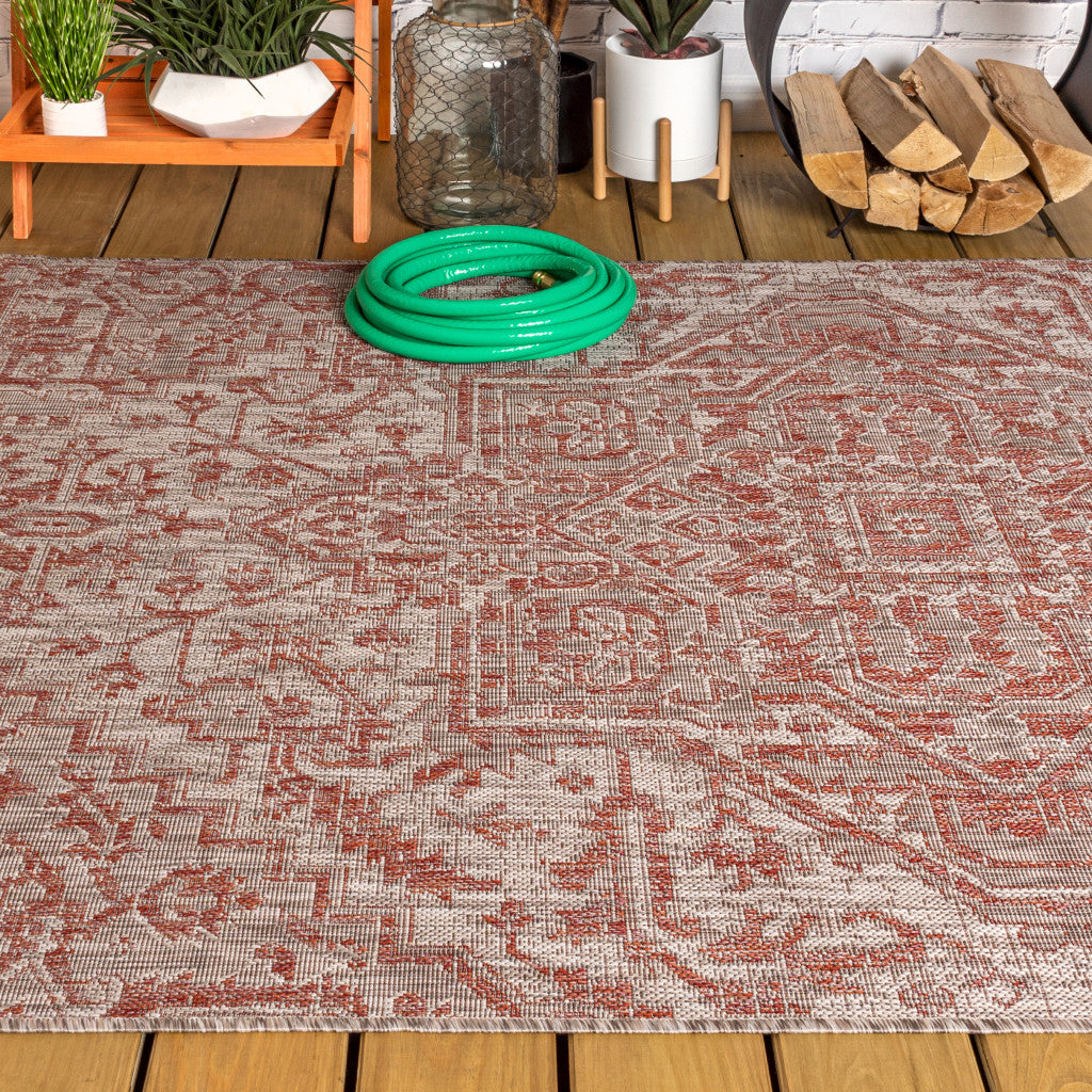4' X 6' Red And Taupe Medallion Indoor Outdoor Area Rug