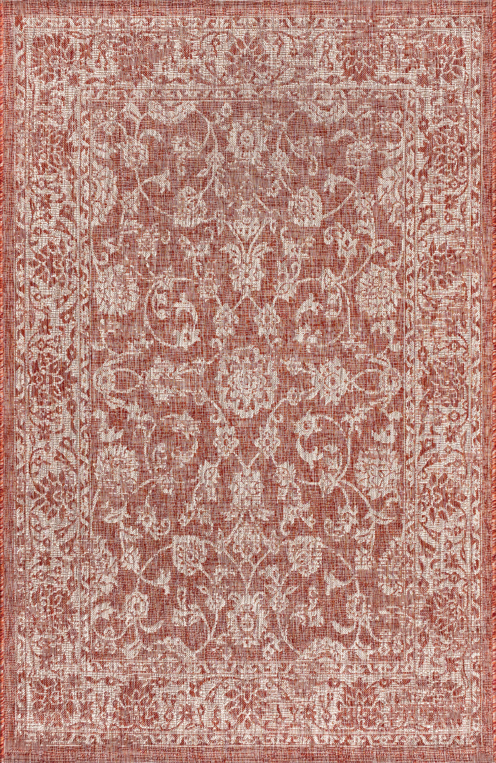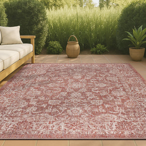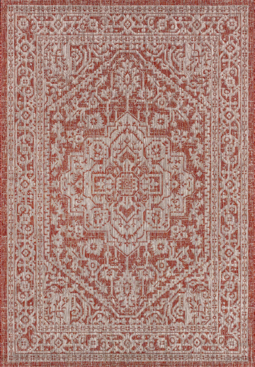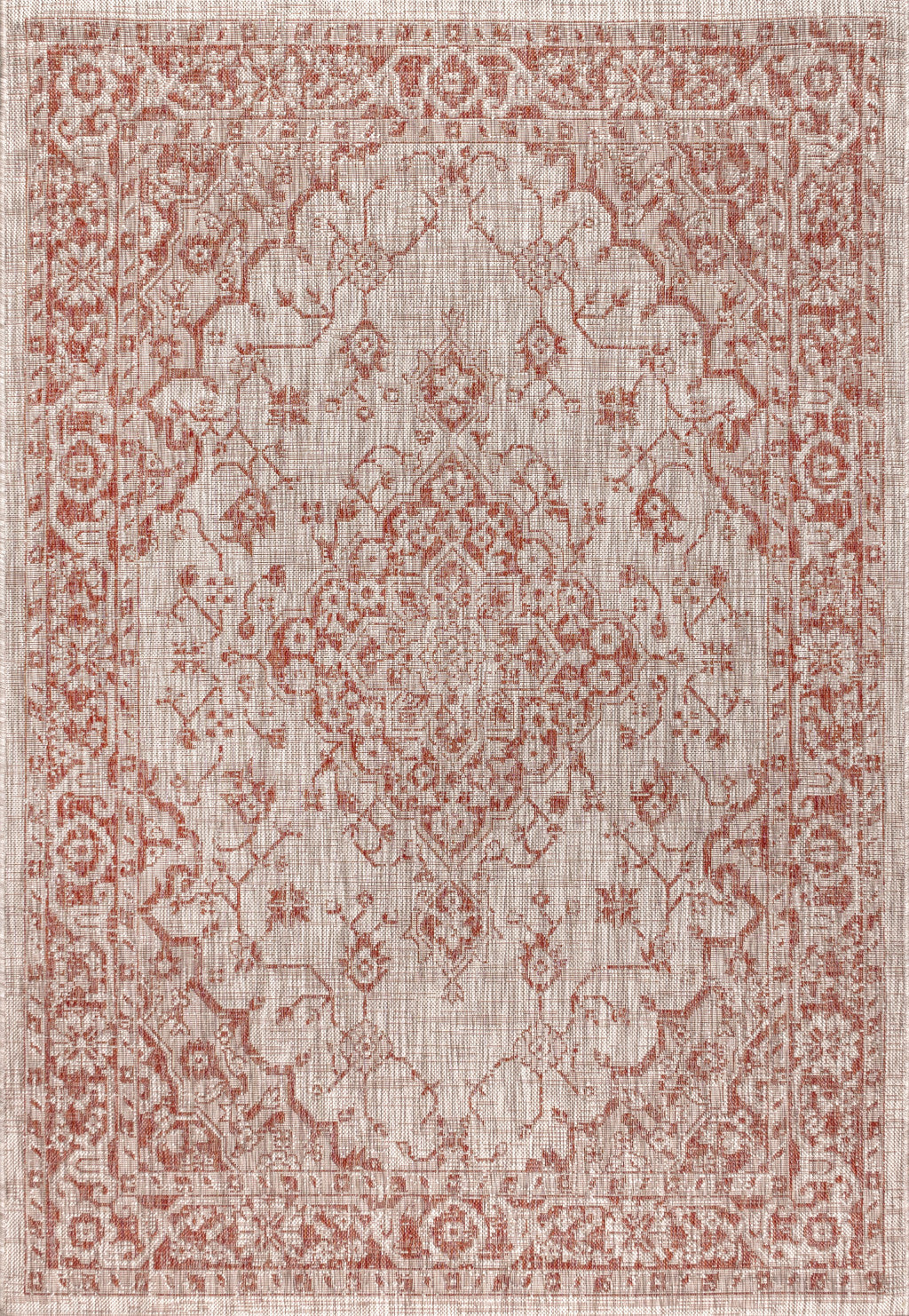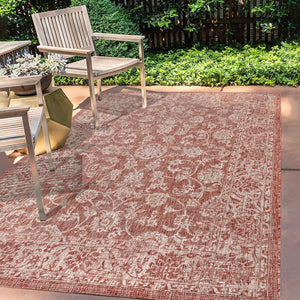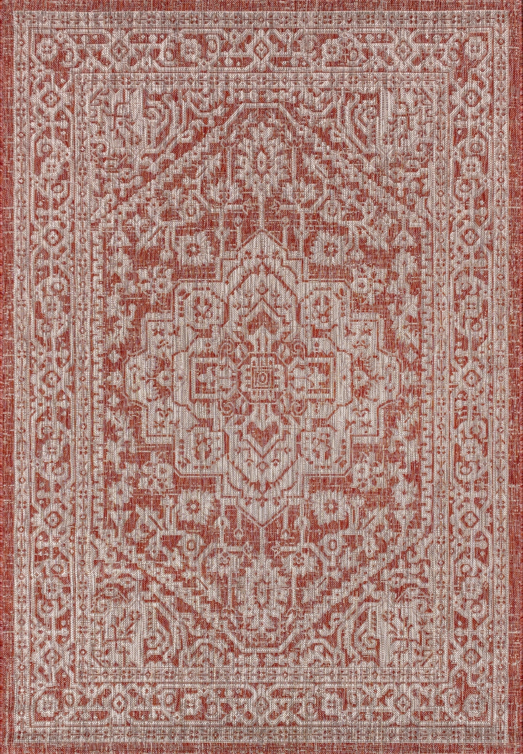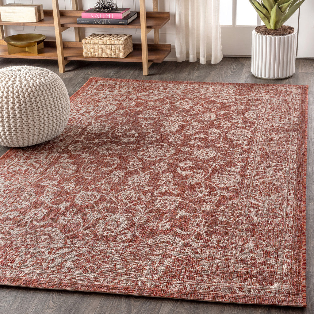 4' X 6' Red And Taupe Medallion Indoor Outdoor Area Rug