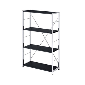 42" Black And Silver Metal and Wood Four Tier Etagere Bookcase