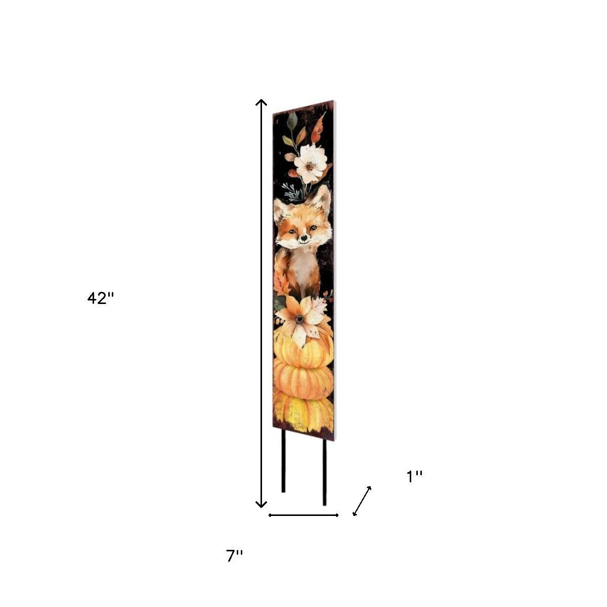 42" Black Tan And Orange Floral Bouquet Solid Wood Fox Garden Stake