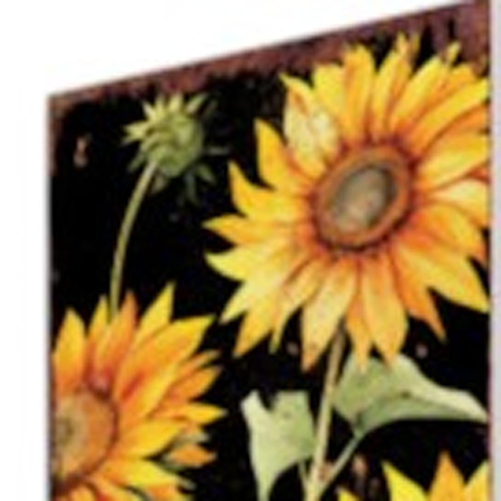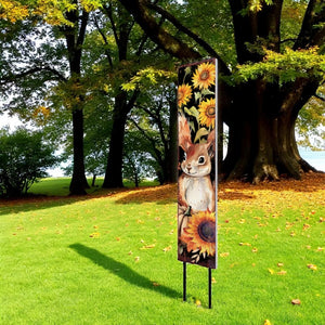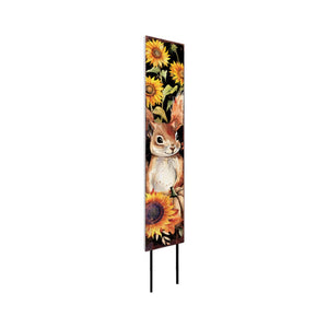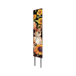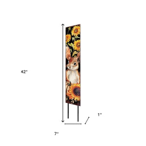 42" Black Yellow And Tan Solid Wood Sunflowers And Squirrel Garden Stake