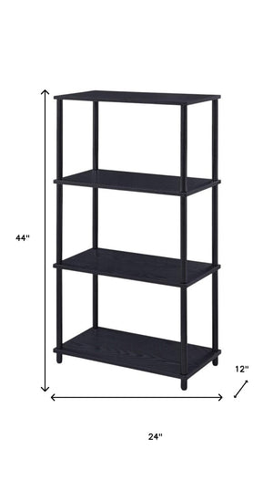 44" Black Metal and Wood Four Tier Etagere Bookcase