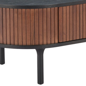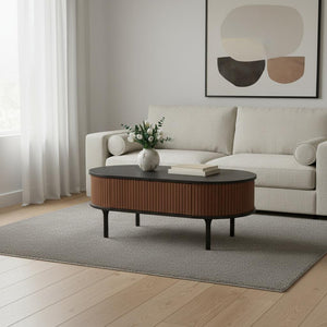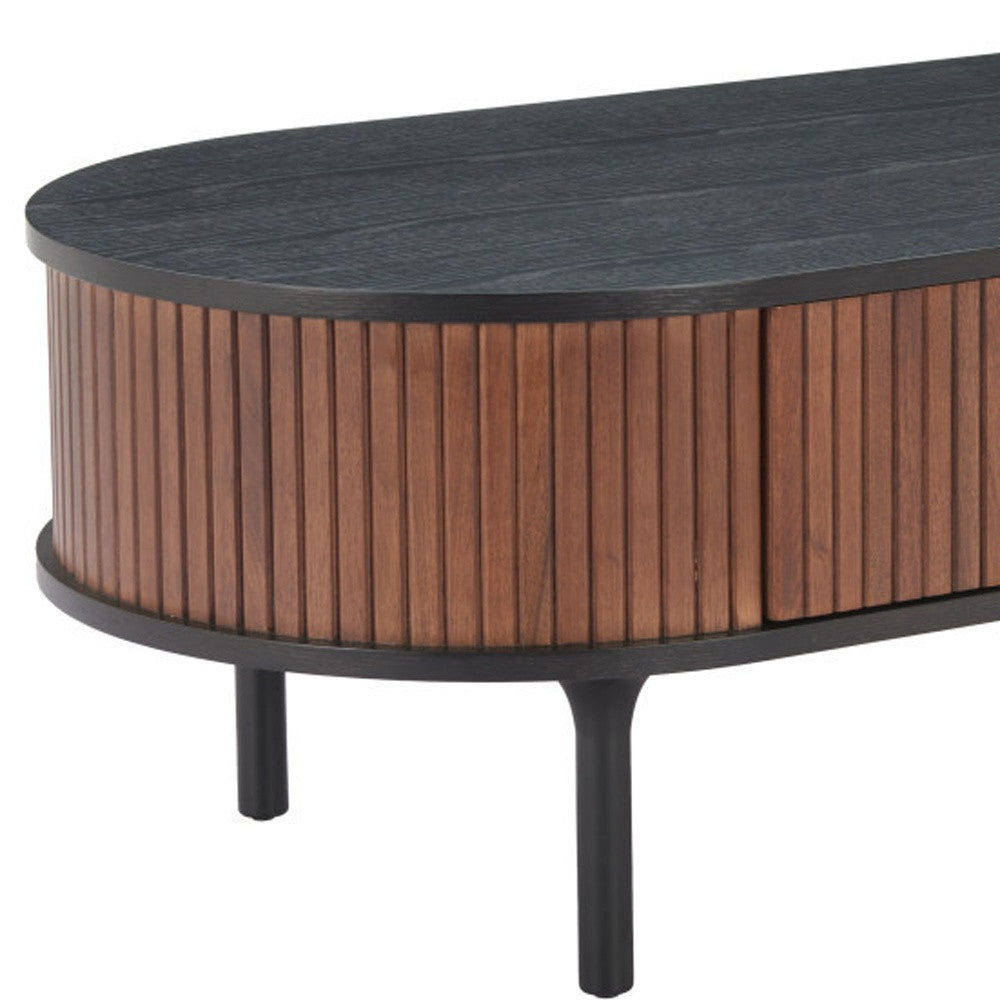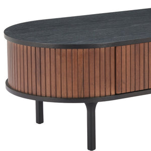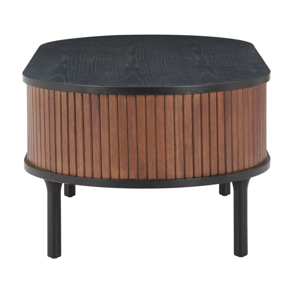 47" Black Wood Oval Pedestal Coffee Table With Drawer