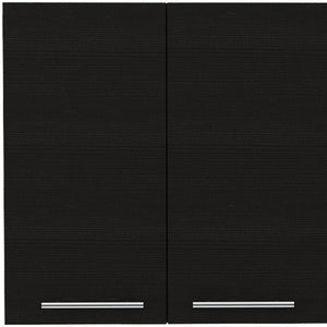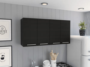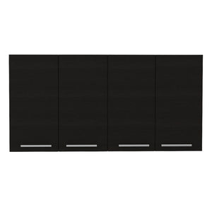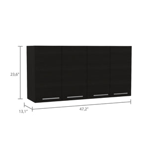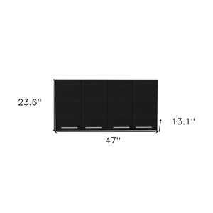 47" Black Wood Wall Mounted Accent Cabinet With Four Doors
