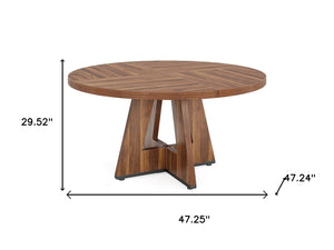 47" Brown Solid Wood Pedestal Base Round Top Dining Table