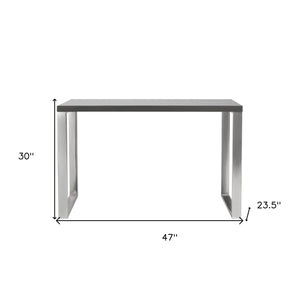 47" Gray and Silver Wood and Stainless Steel Sled Writing Desk