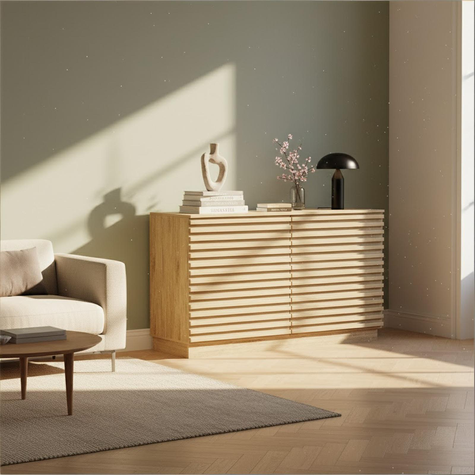 47" Oak Solid Wood Console Accent Cabinet With Six Drawers