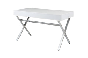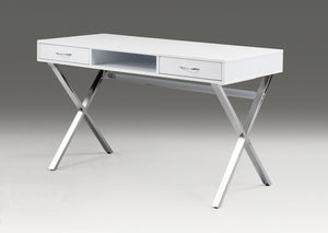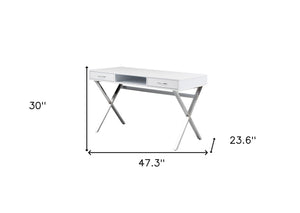47" White and Silver Wood and Metal Computer Desk With Two Drawers
