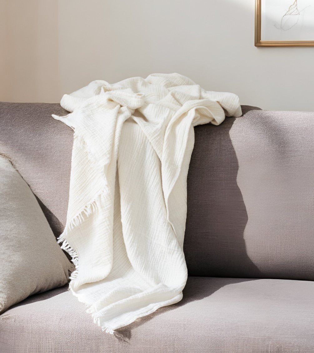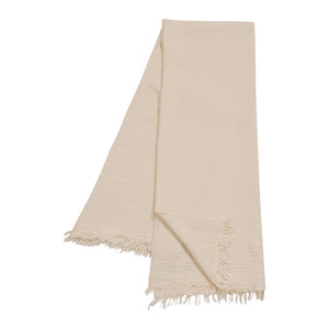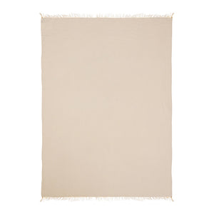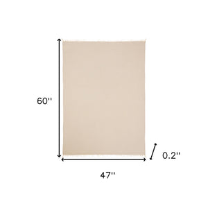 47" X 60" Beige Cotton Woven Turkish Towel Throw Blanket with Fringe