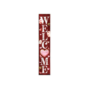 48" Red And White Solid Wood Valentine's Day Heart Welcome Porch Sign