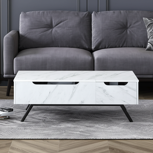 48" White and Black Wood and Steel Lift Top Coffee Table With Drawer