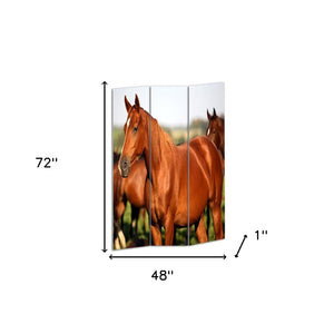 48" X 72" Multi Color Wood Canvas Horse Screen