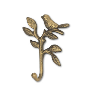5" Antiqued Gold Cast Iron Bird Wall Hook