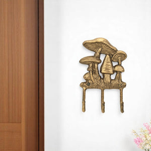 5" Antiqued Gold Cast Iron Mushroom Three Hook Wall Mount Coat Rack