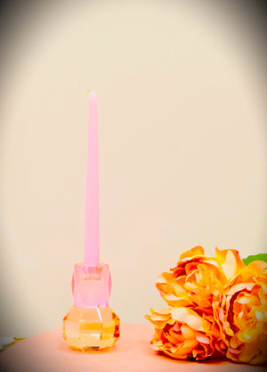 5" Pink And Clear Faceted Crystal Tabletop Taper Candlestick