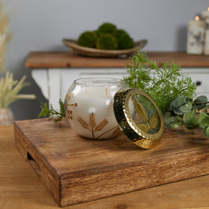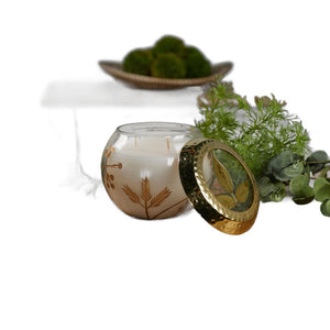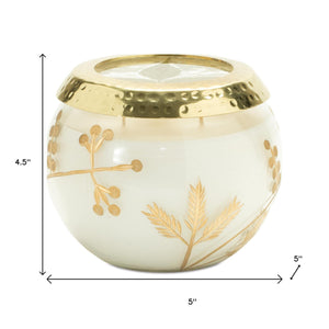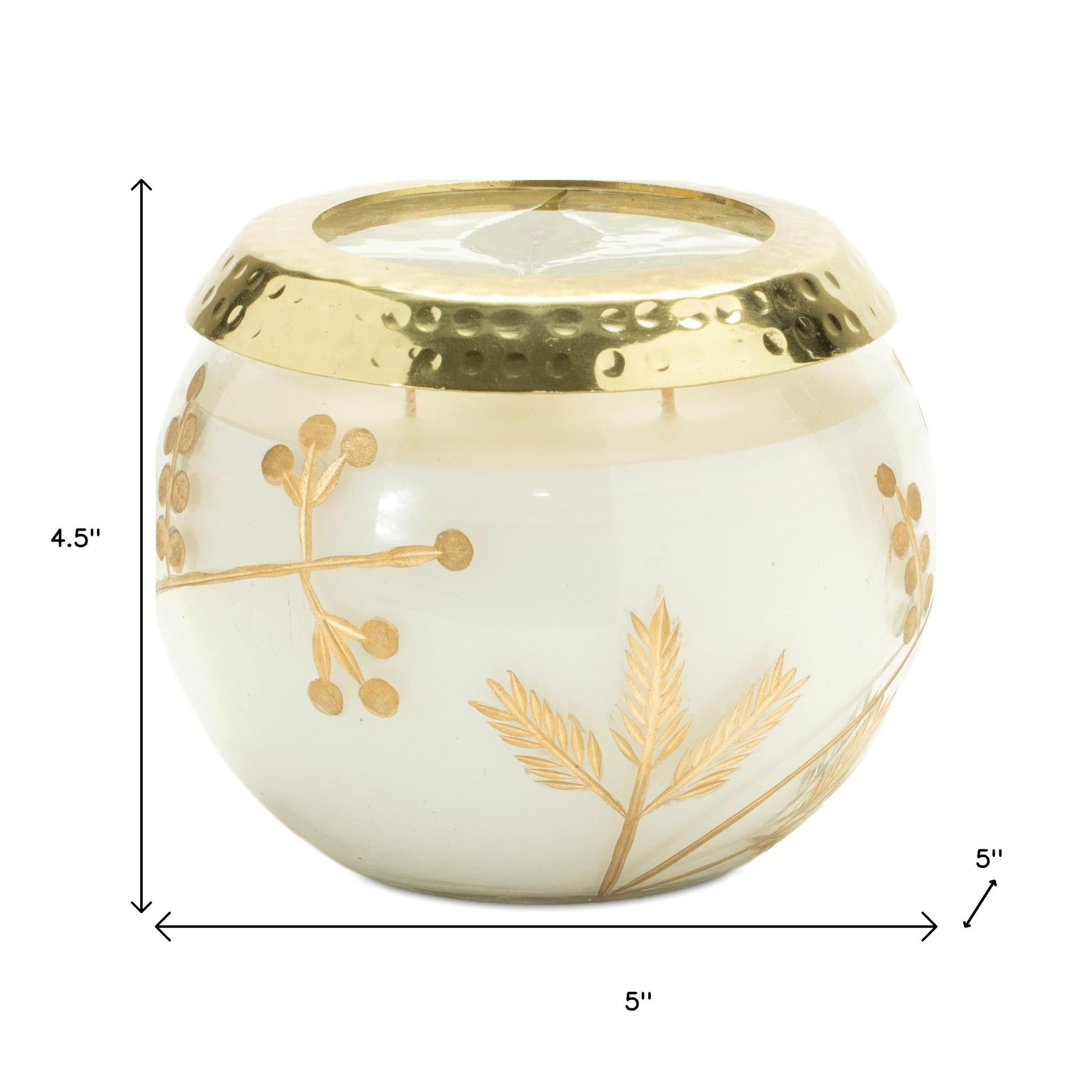 5" White Scented Dripless Two Wick Designer Candle With Clear And Gold Holder