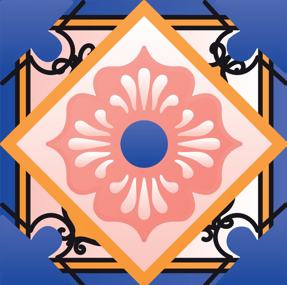 5" x 5" Blue Gold and Blush Mosaic Peel and Stick Removable Tiles