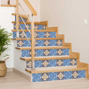 5" X 5" Blues and Crema Peel And Stick Removable Tiles