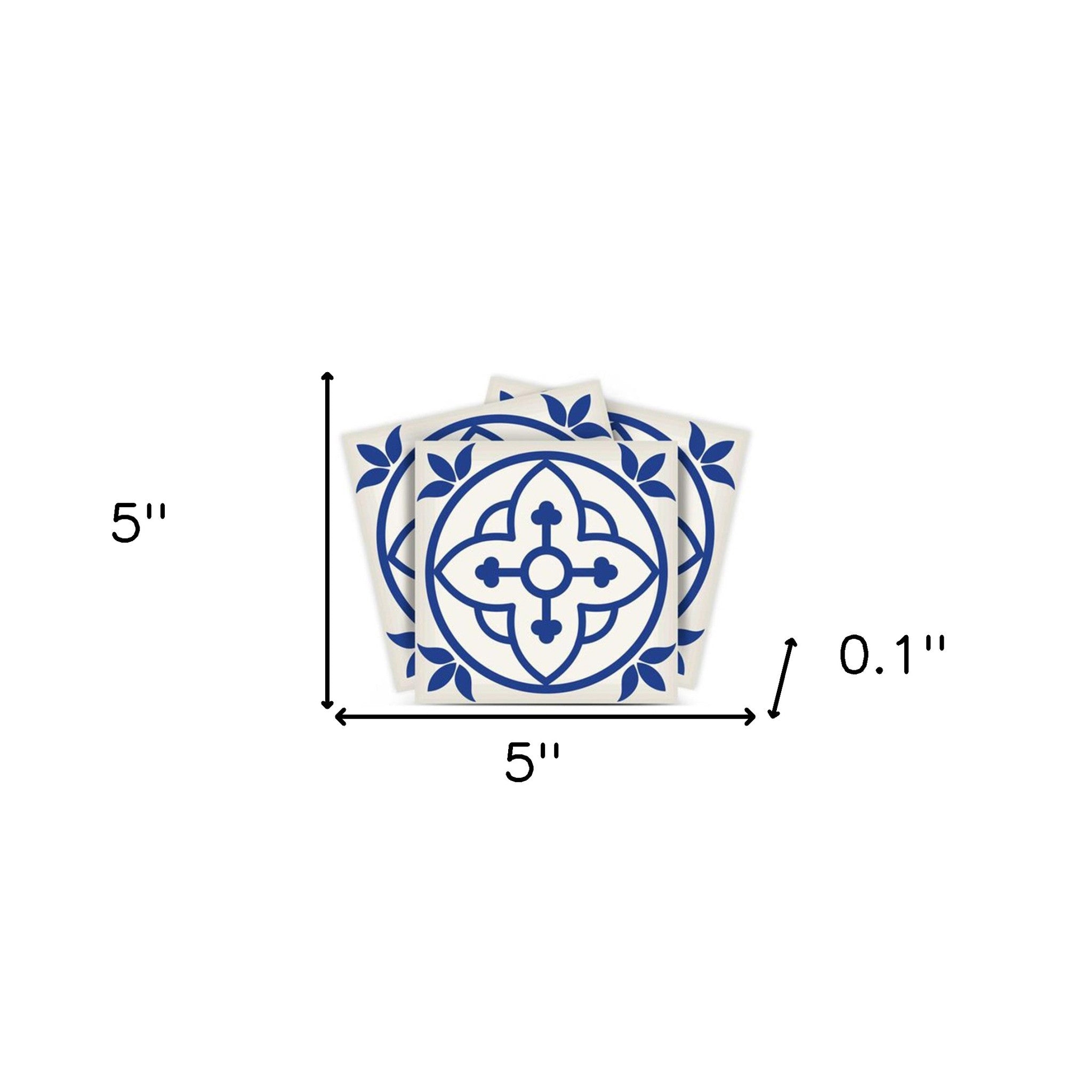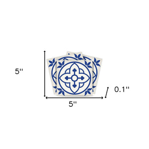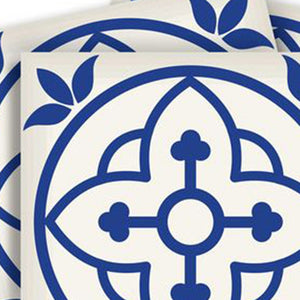 5" X 5" Tulipa Blue and White Peel and Stick Removable Tiles