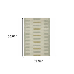 5' X 7' Beige Grey Gold And Green Geometric Power Loom Stain Resistant Area Rug