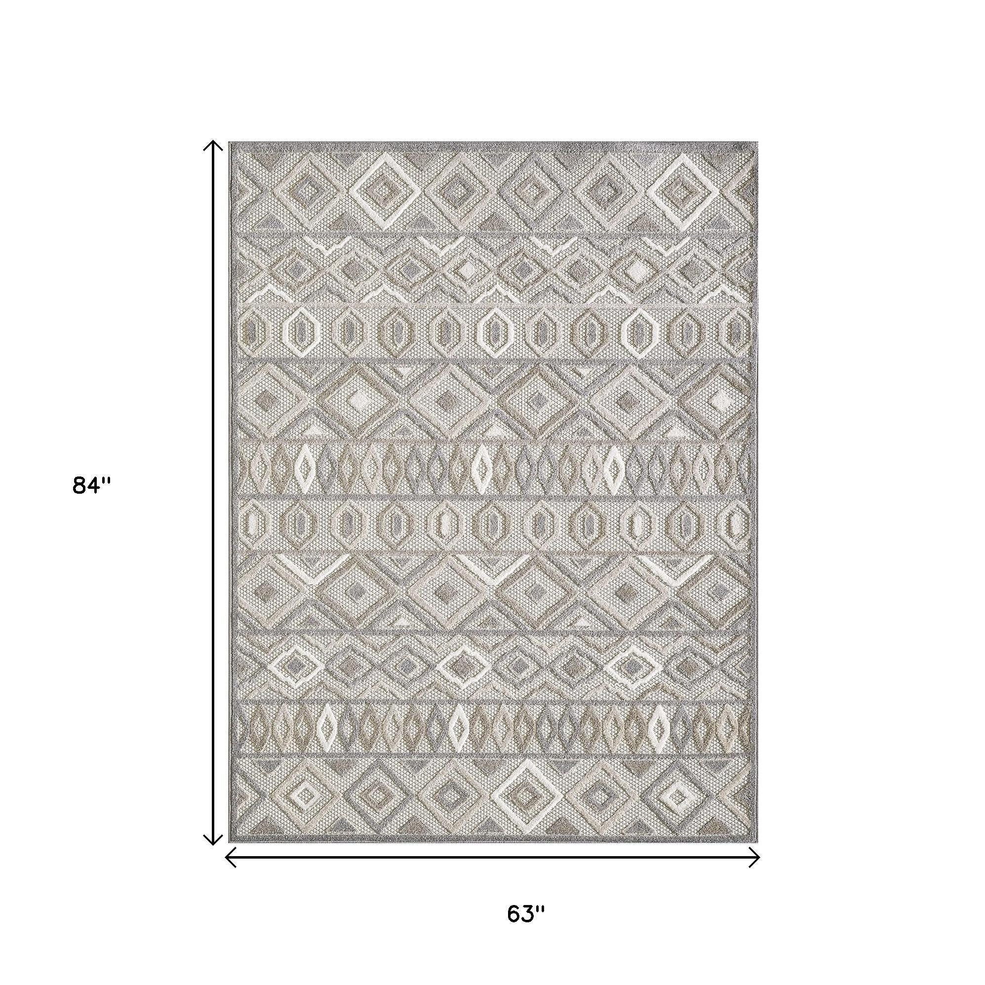 5' X 7' Gray And Ivory Southwestern Stain Resistant Indoor Outdoor Area Rug