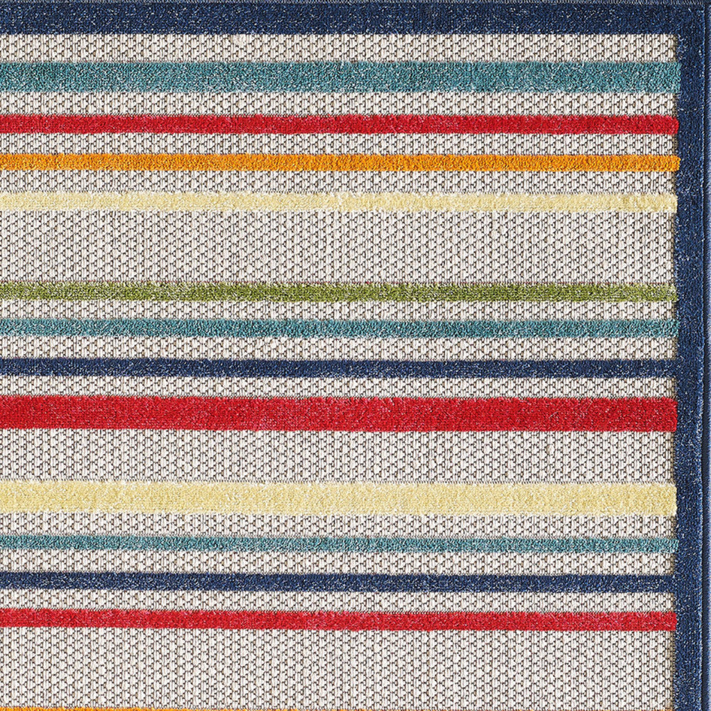 5' X 7' Ivory And Blue Striped Stain Resistant Indoor Outdoor Area Rug