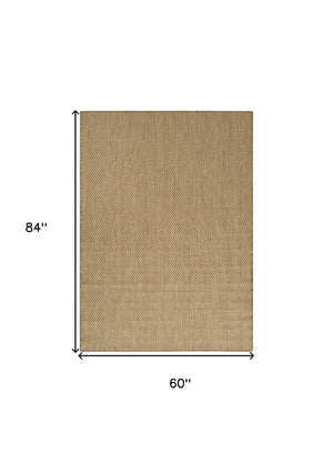 5' X 7' Tan And Brown Geometric Indoor Outdoor Area Rug