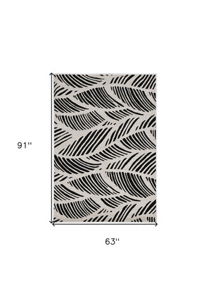 5' X 8' Black And White Abstract Indoor Outdoor Area Rug