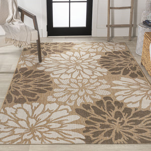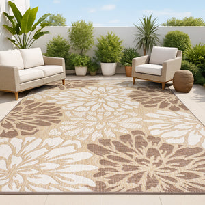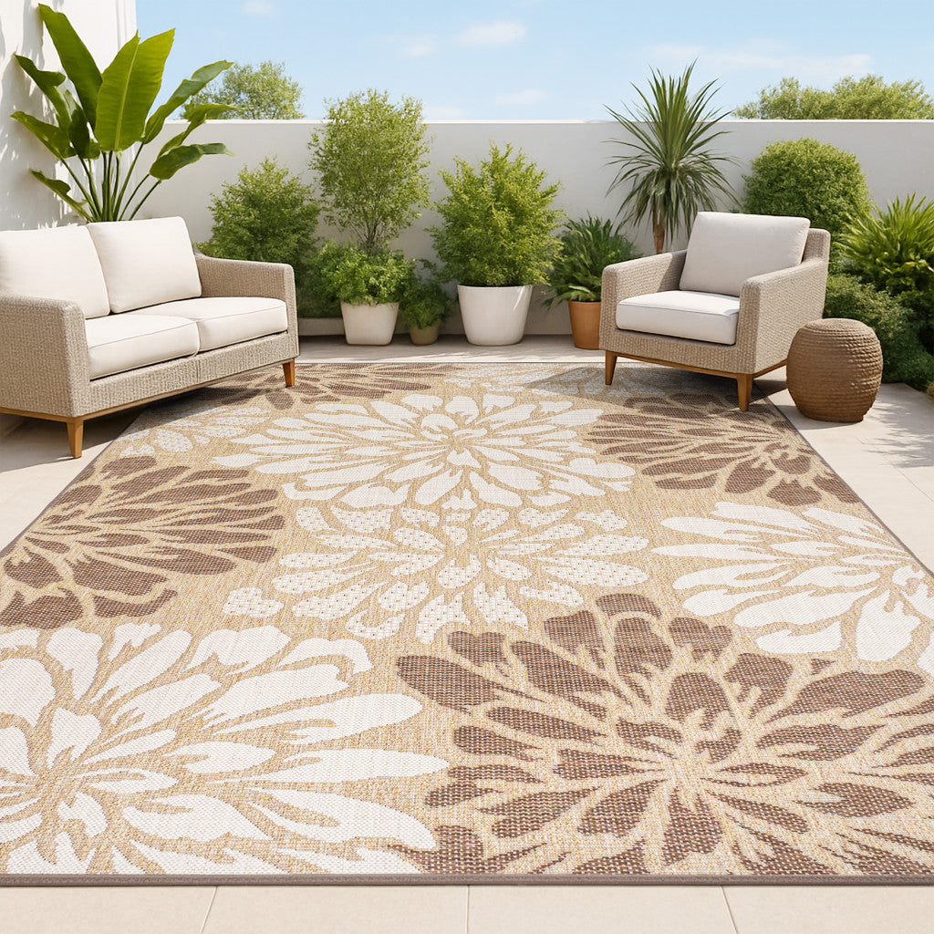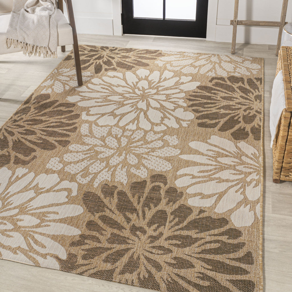 8' X 10' Brown And Cream Floral Indoor Outdoor Area Rug