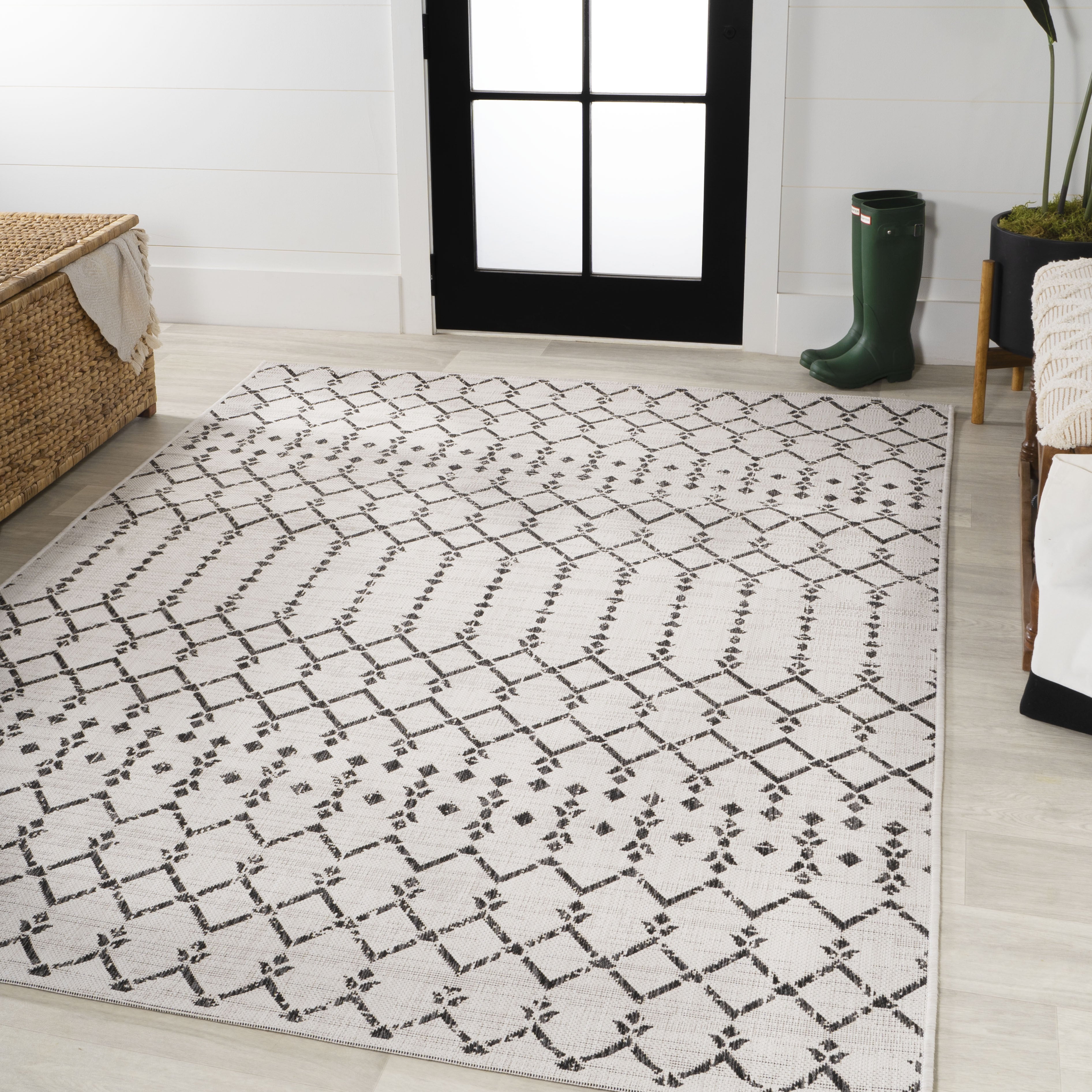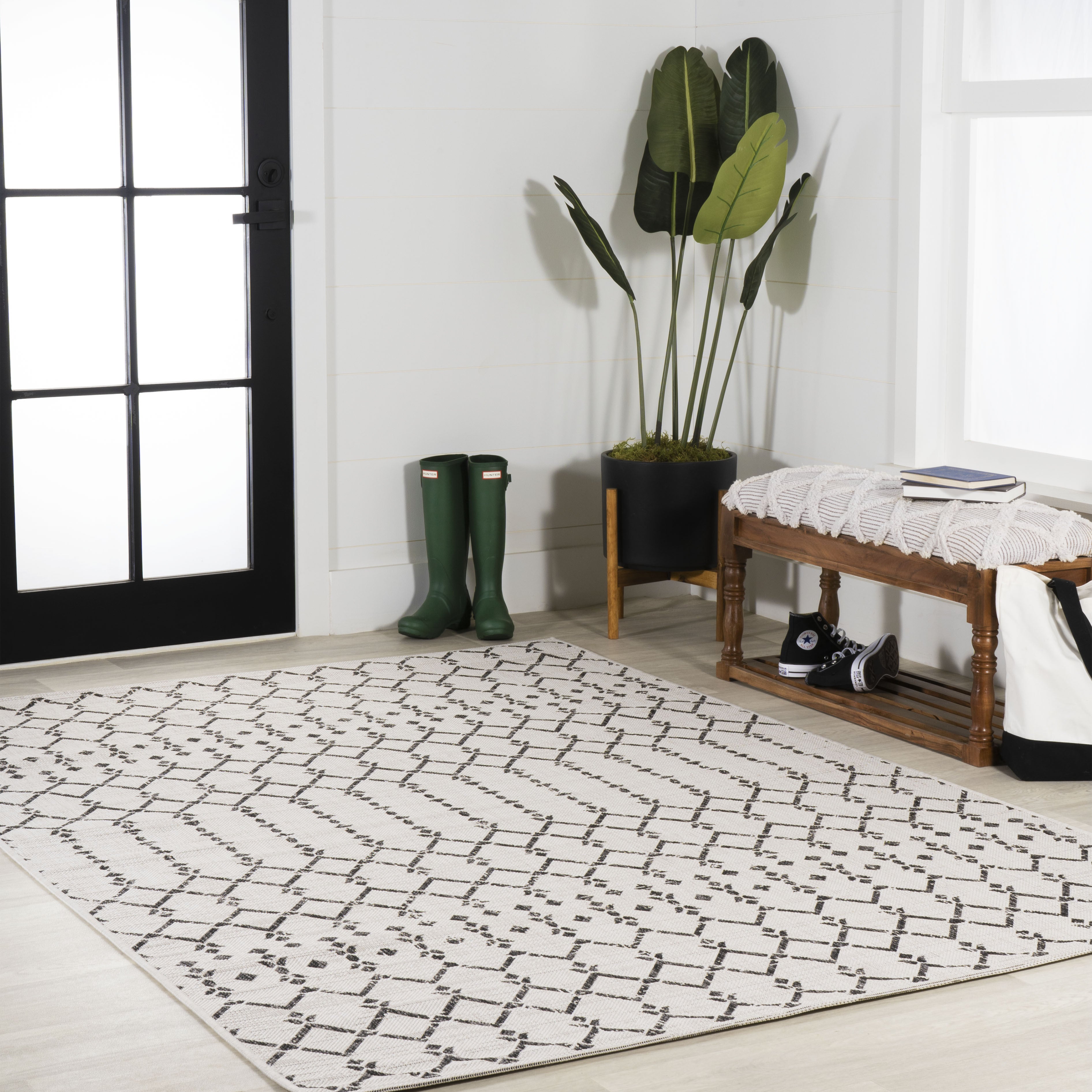 8' X 10' Cream And Black Trellis Indoor Outdoor Area Rug