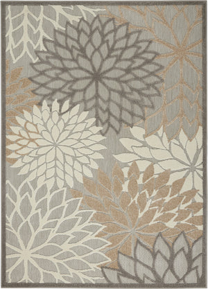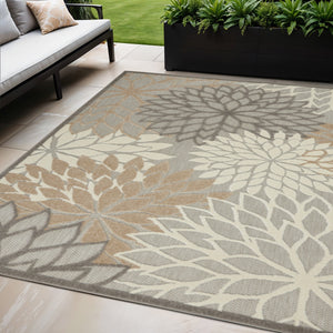 5' X 8' Gray And Ivory Floral Indoor Outdoor Area Rug