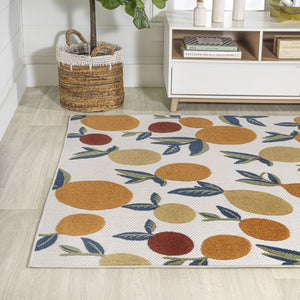 5' X 8' Orange Beige And Cream Polka Dot Indoor Outdoor Area Rug