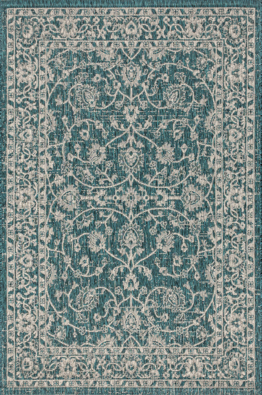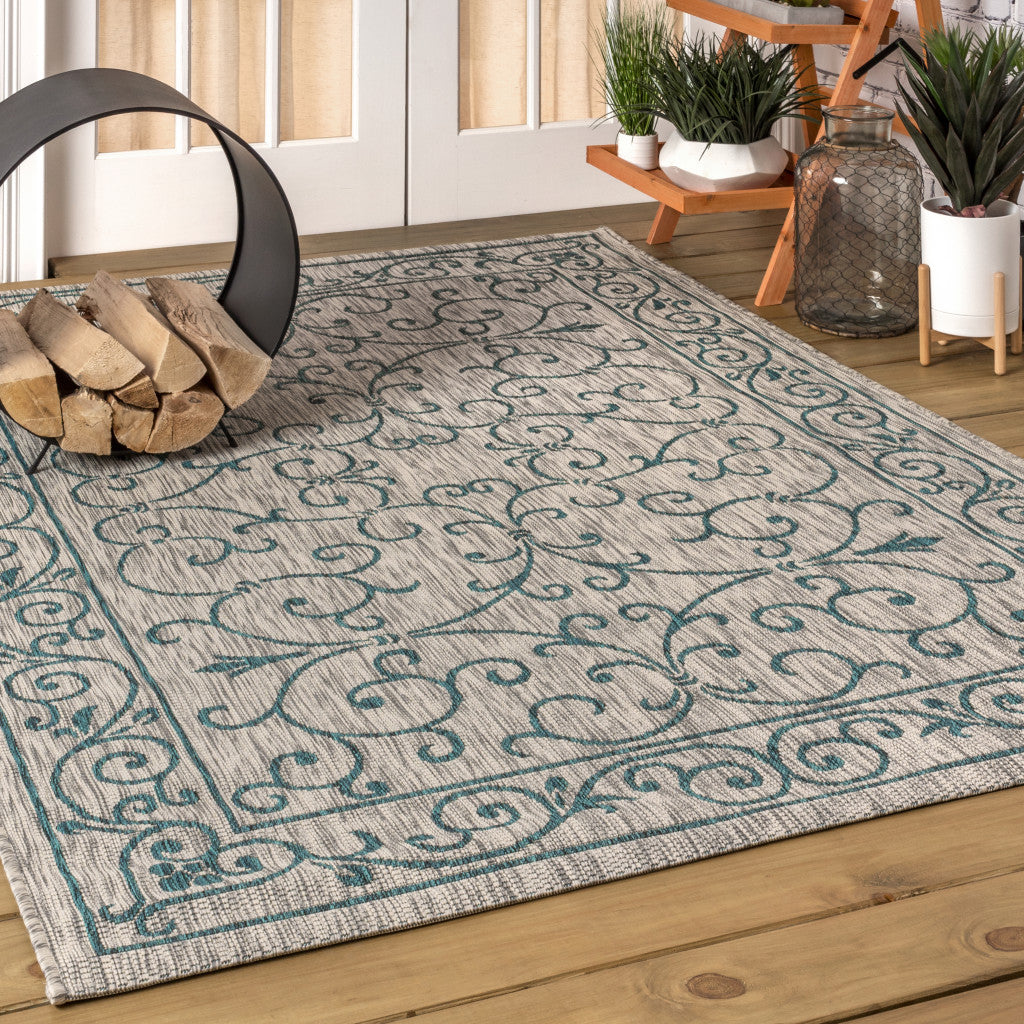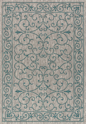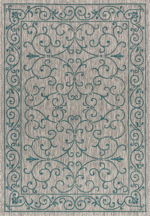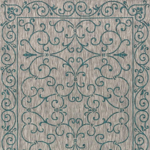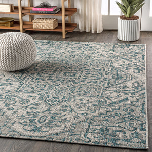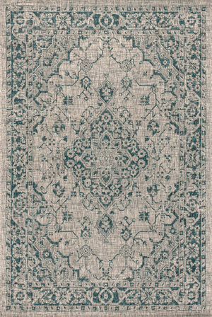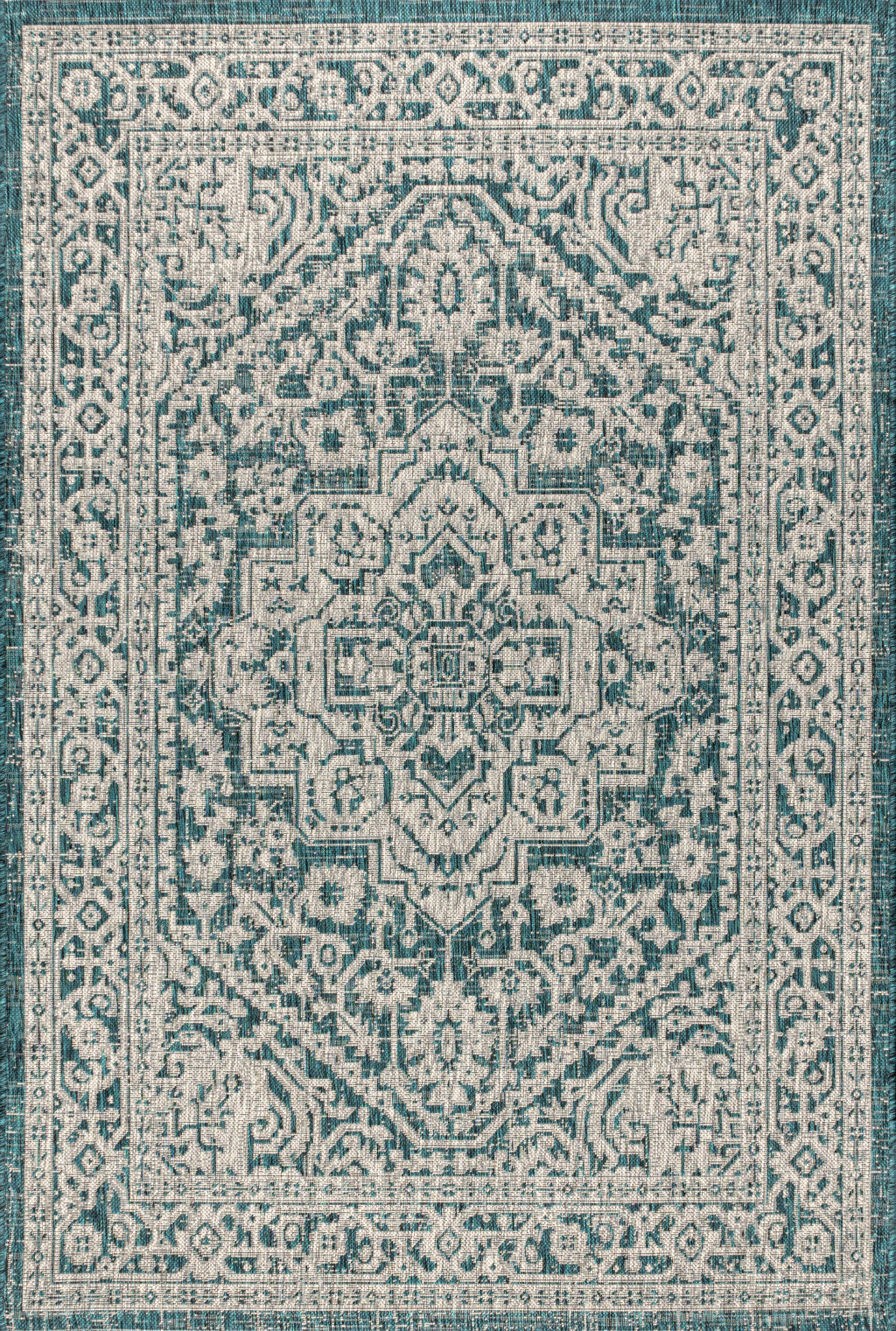 5' X 8' Teal Blue And Gray Medallion Indoor Outdoor Area Rug