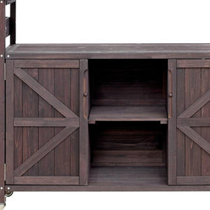 50" Brown Wood Barn Door Rolling Kitchen Island With Storage