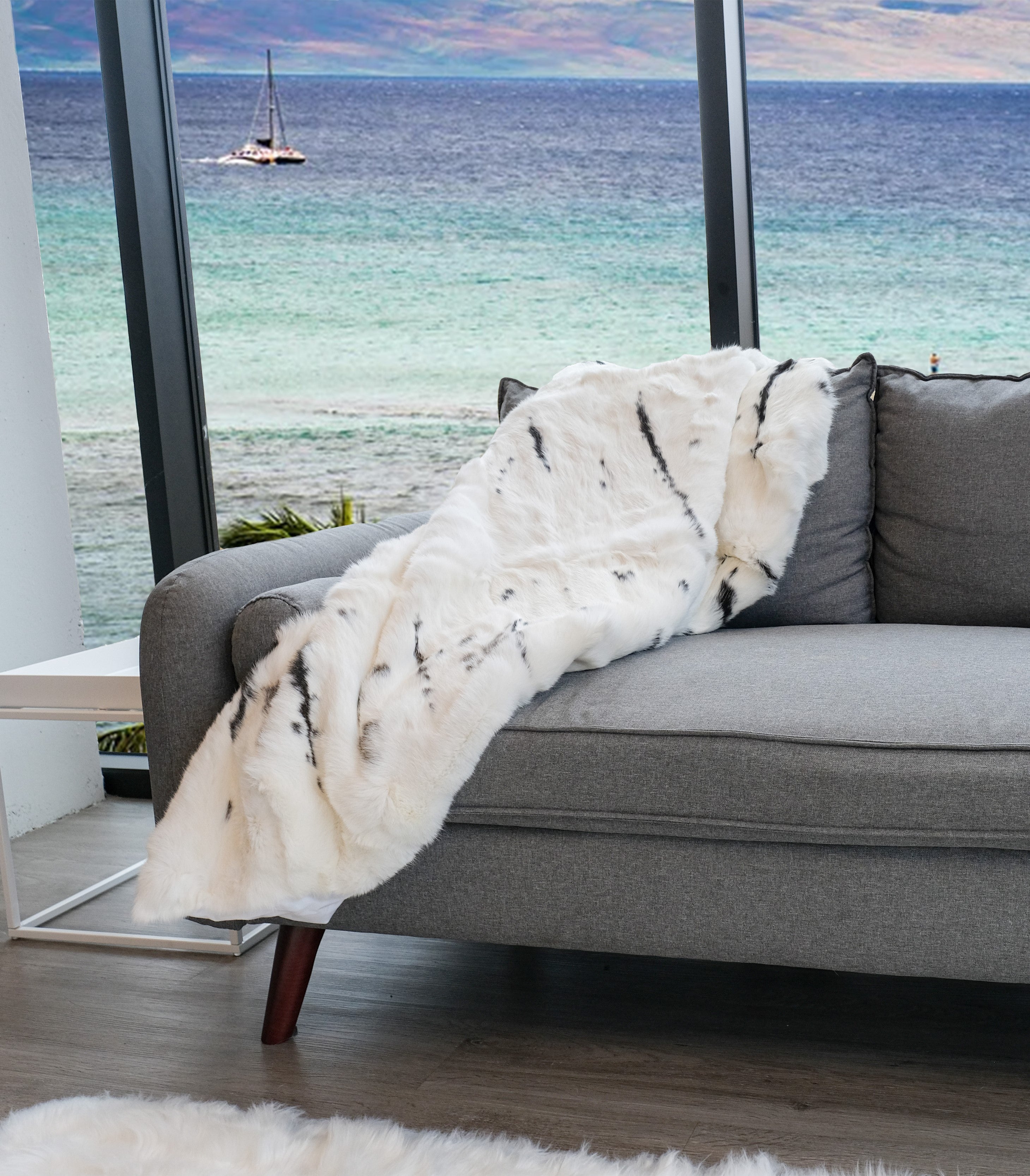 50" X 60" Black And White Rabbit Fur Plush Throw Blanket