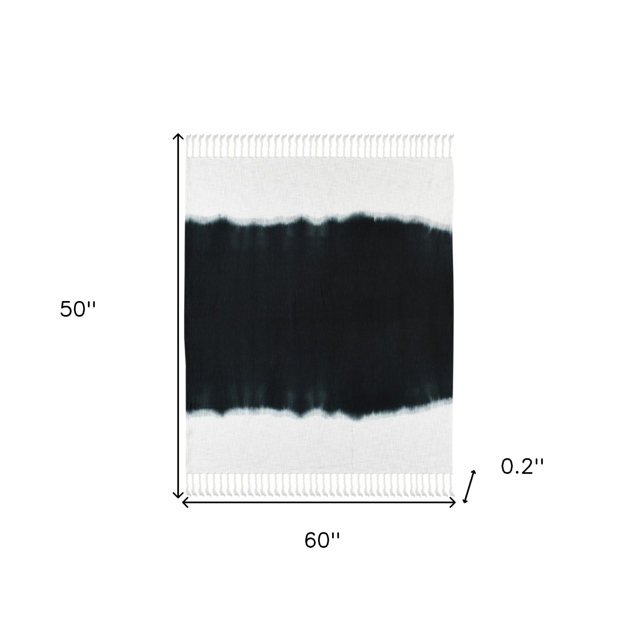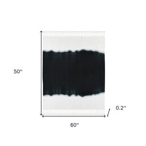 50" X 60" Black and White Woven Cotton Ombre Throw Blanket with Fringe