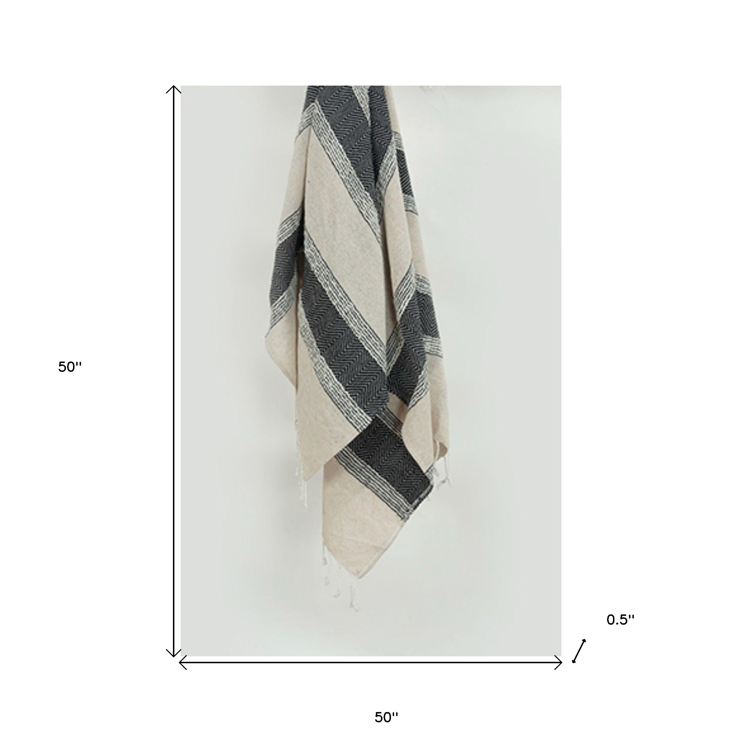 50" X 60" Black Cotton Woven Striped Throw Blanket with Fringe