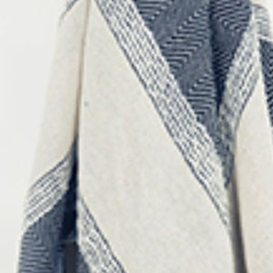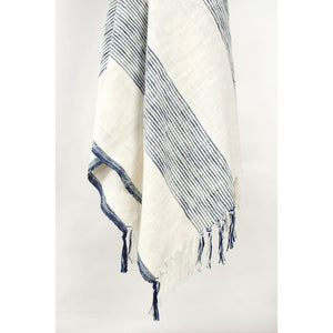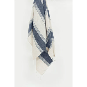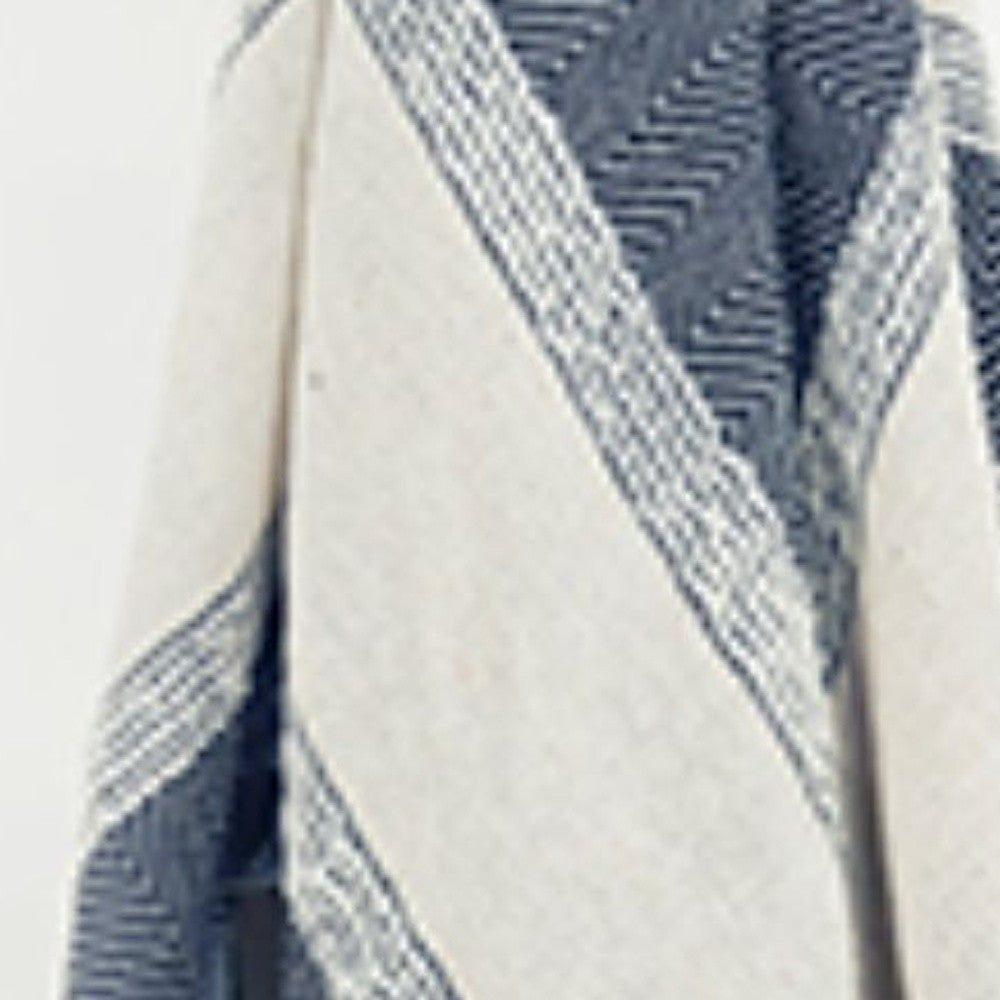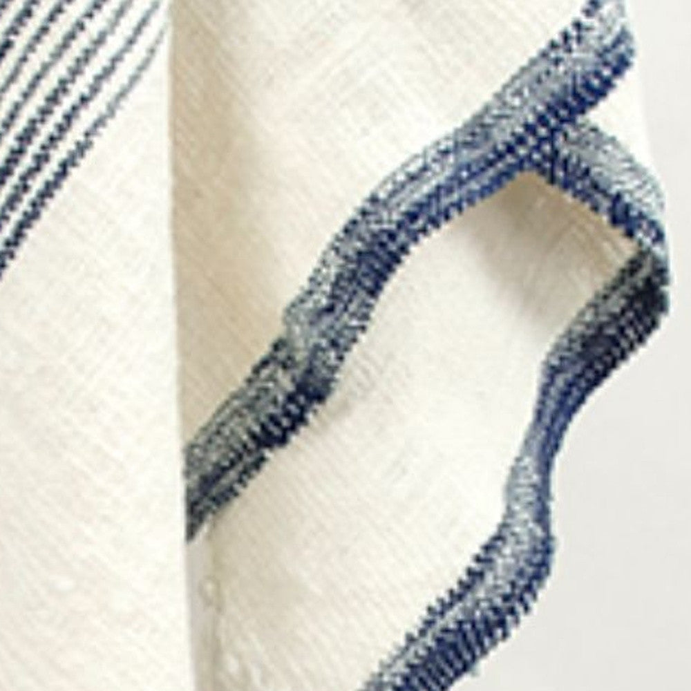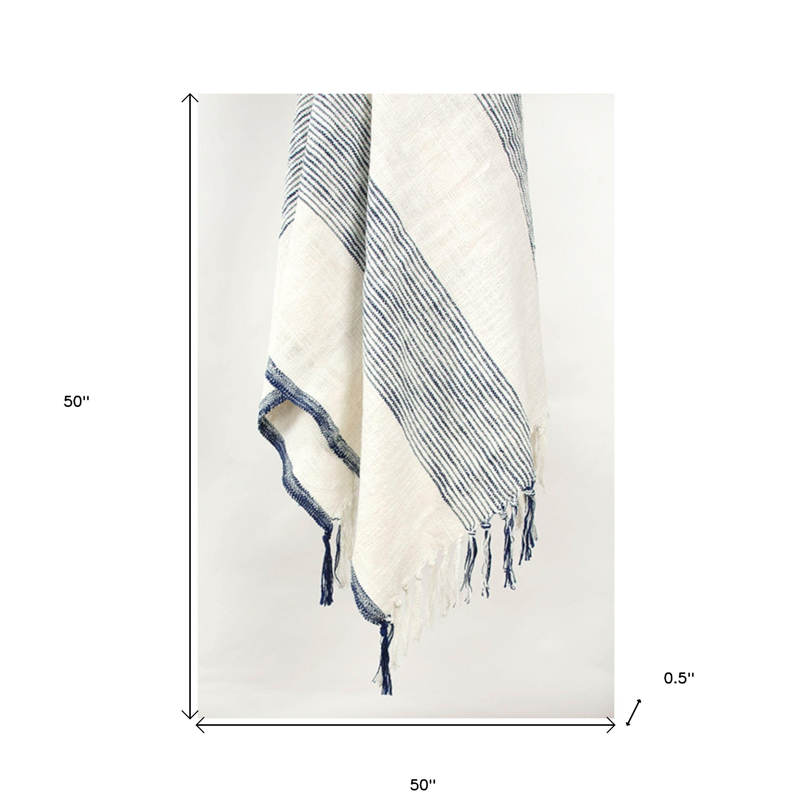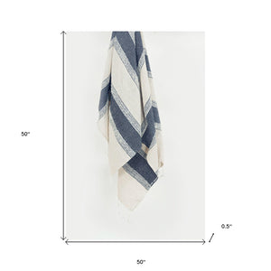 50" X 60" Blue And Ivory Cotton Woven Striped Throw Blanket with Fringe