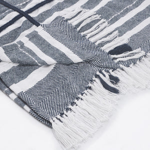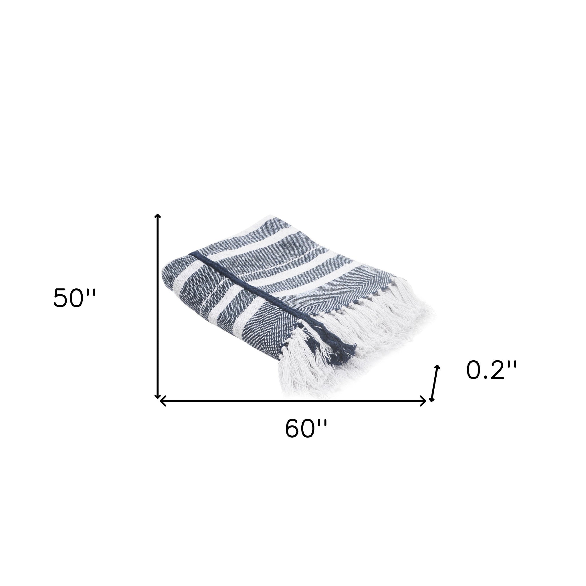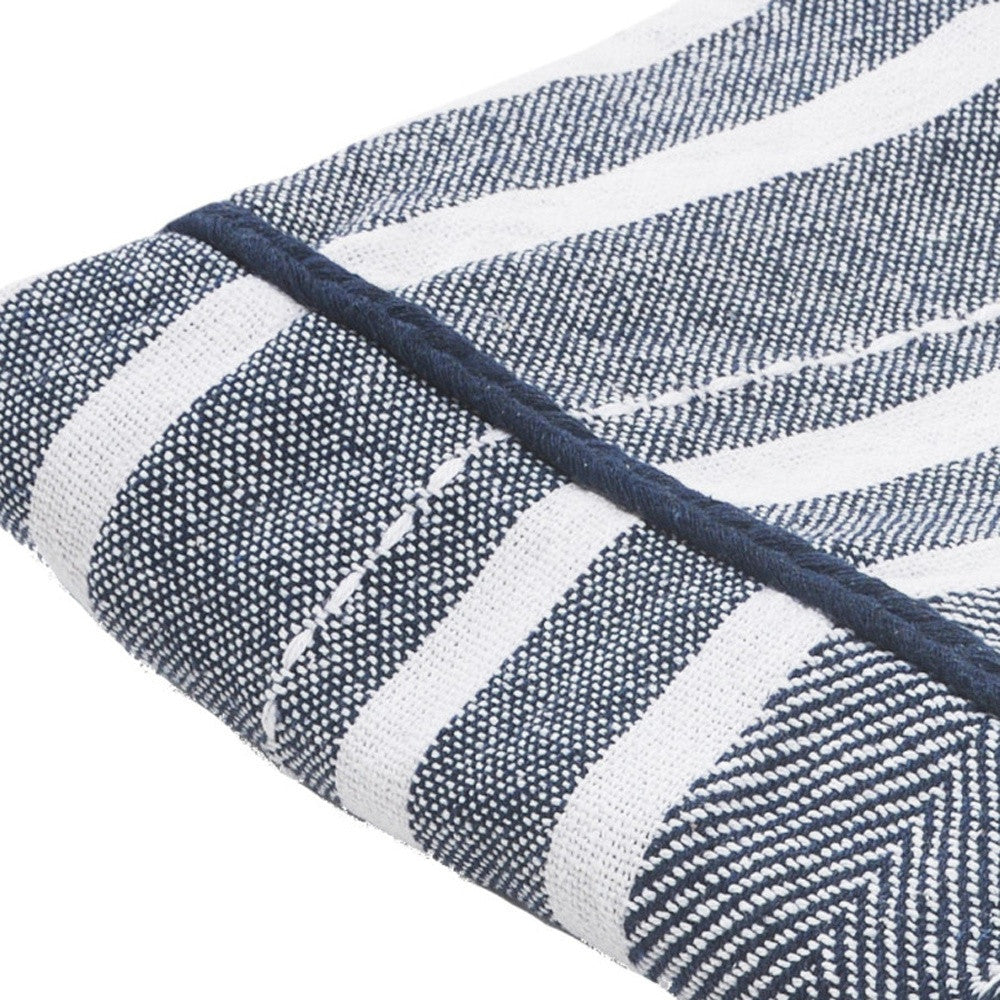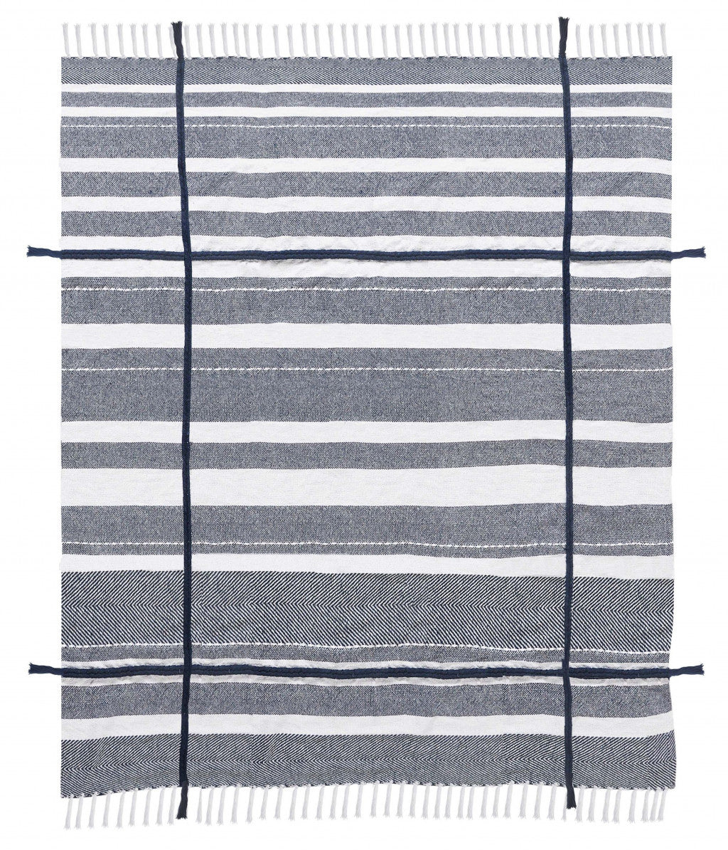 50" X 60" Blue and White Kantha Cotton Striped Throw Blanket with Embroidery