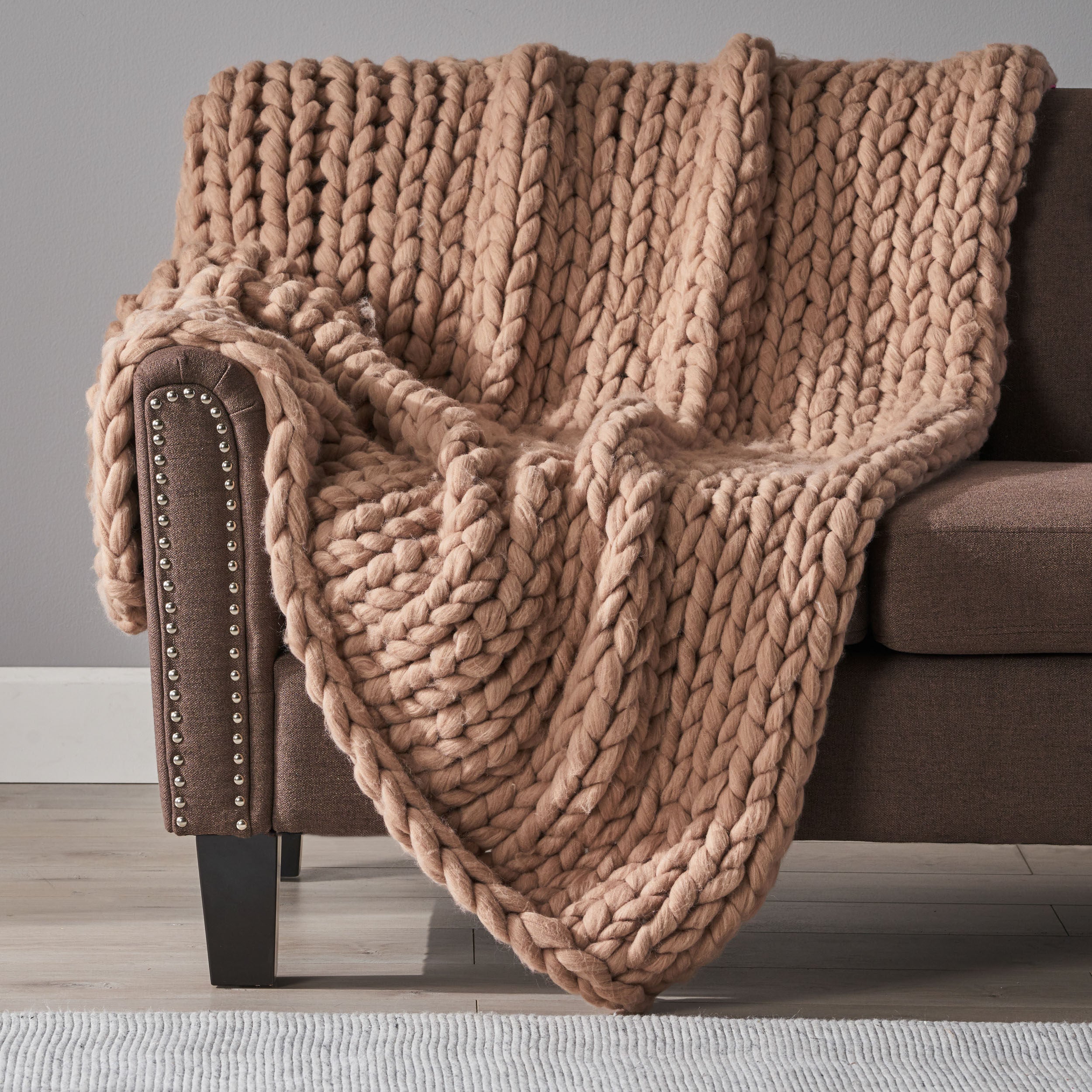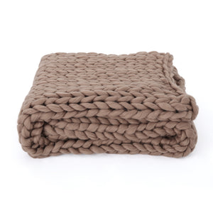 50" X 60" Brown Wool Acrylic Blend Knitted Plush Throw Blanket