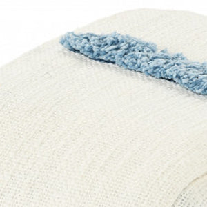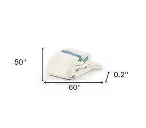 50" X 60" Cream Kantha Cotton Geometric Throw Blanket with Embroidery