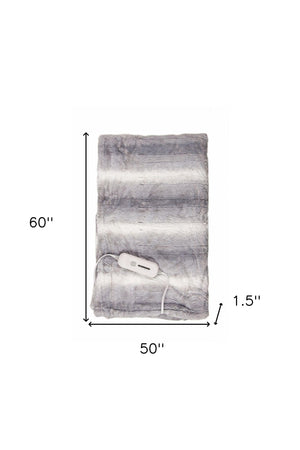 50" X 60" Gray And White Heated Electric Striped Throw Blanket