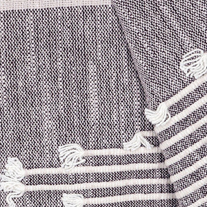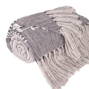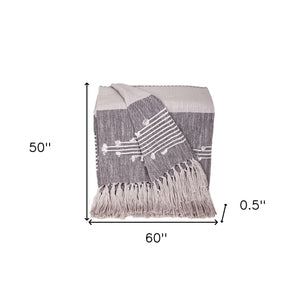 50" X 60" Gray Woven Cotton Striped Throw Blanket with Tassels and Embroidery
