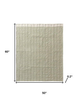 50" X 60" Green And Ivory Striped Polyester Woven Throw Blanket