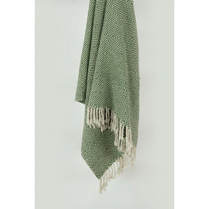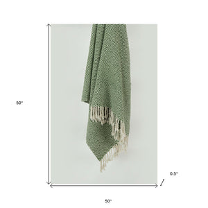 50" X 60" Green Cotton Woven Geometric Throw Blanket with Fringe