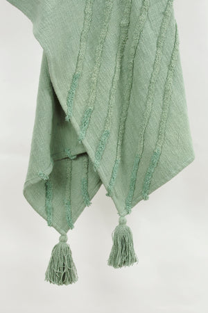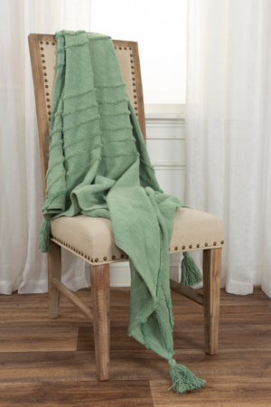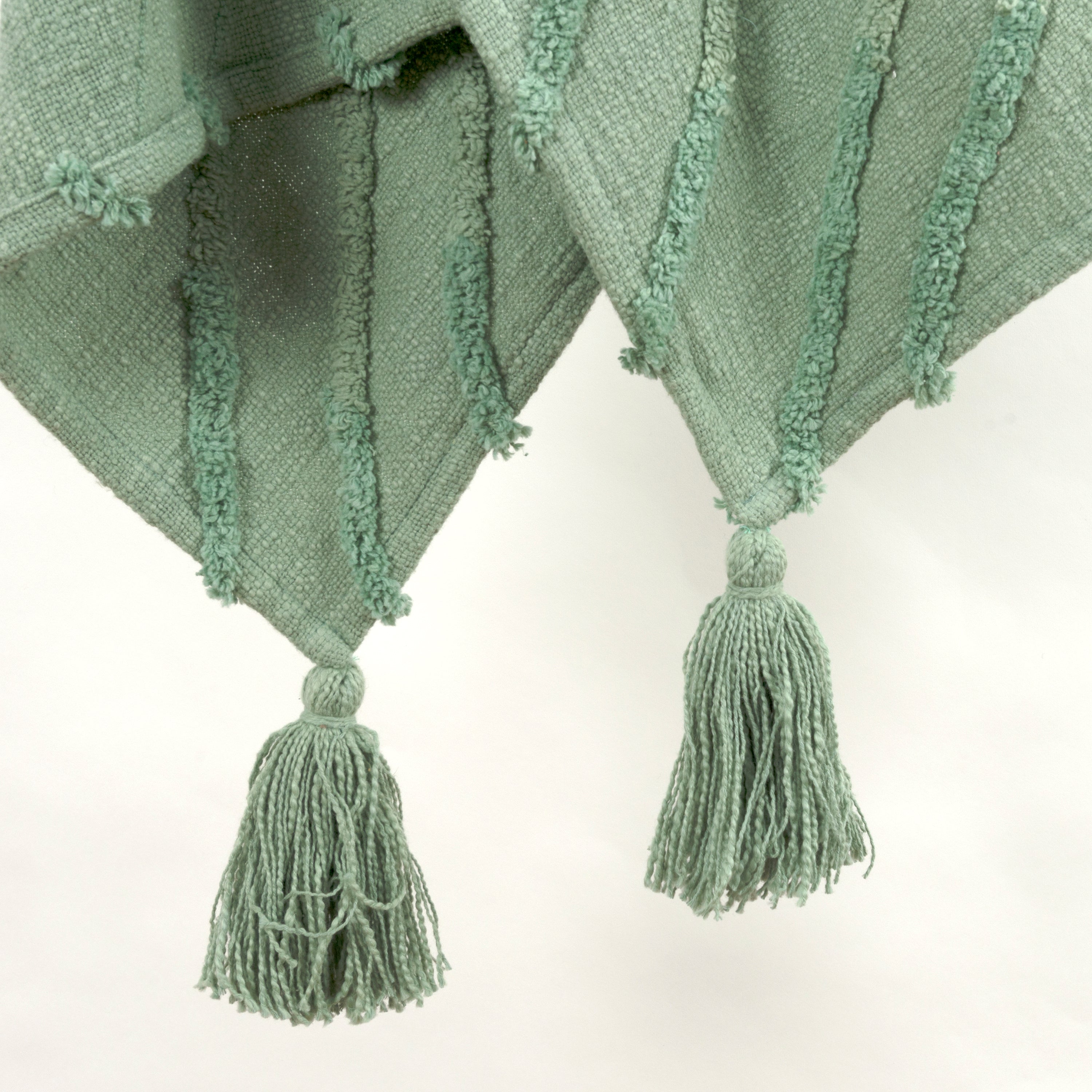 50" X 60" Green Cotton Woven Geometric Throw Blanket with Tassels